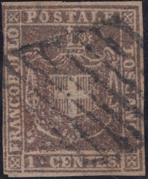 1860 - 1 cent. violetto usato tramite griglia pontificia n.A1. Alcune imperfezioni. (A-) (Bottacchi)