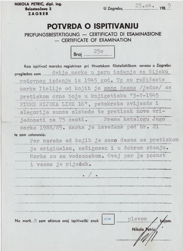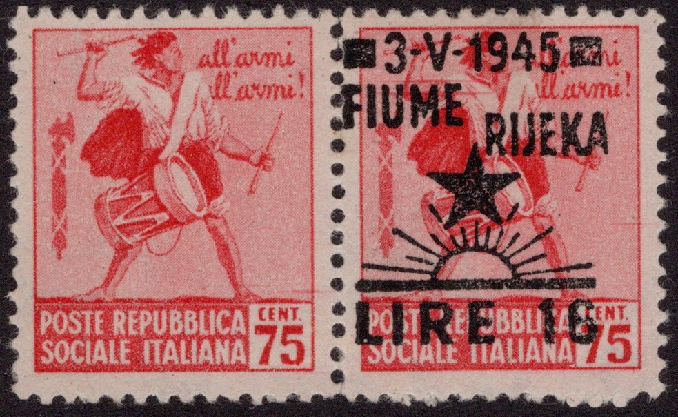 Fiume - Occupazione Jugoslava, n.21 in coppia di cui uno senza soprastampa. MNH.