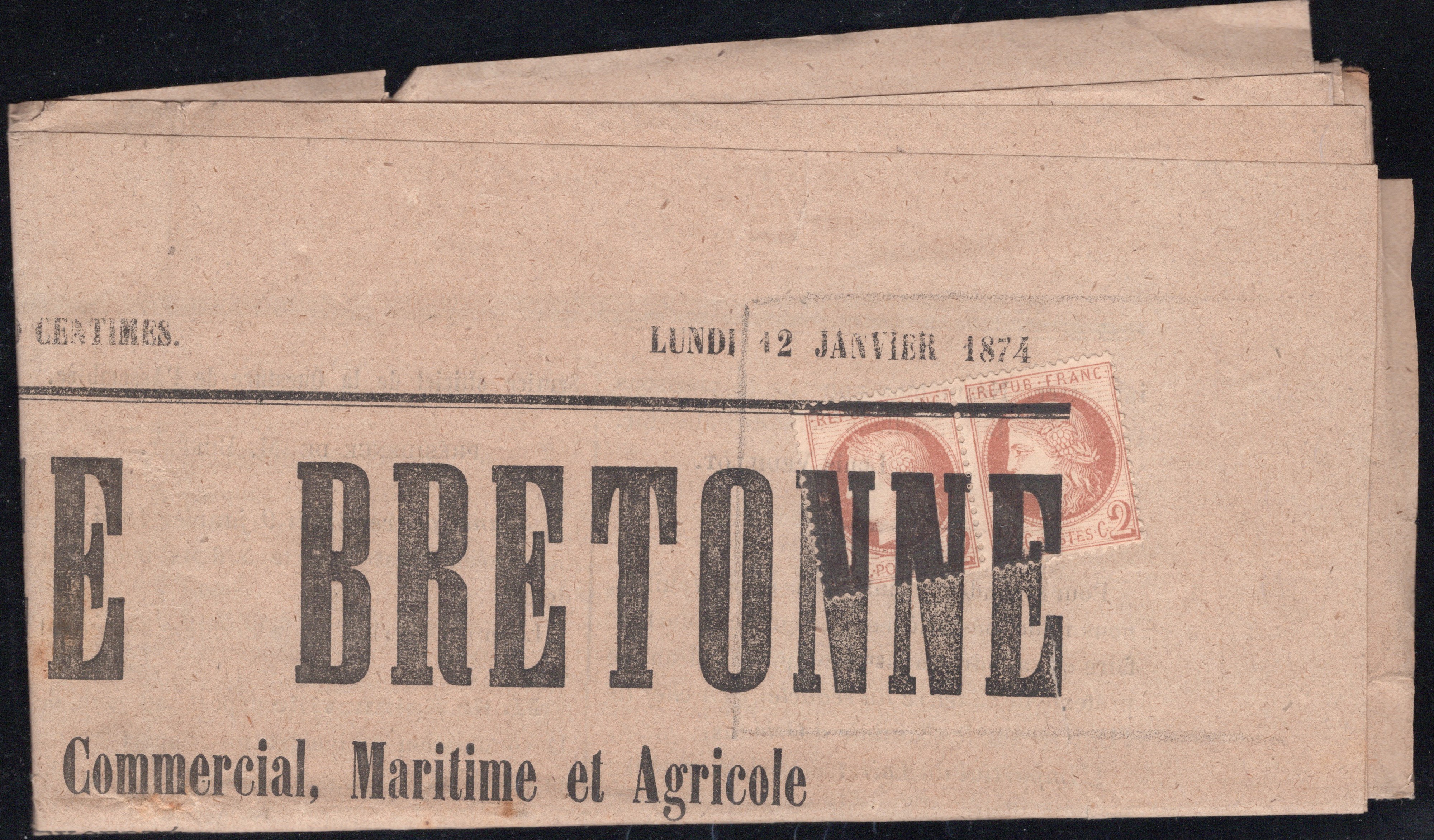 Francia - Terza repubblica, giornale affrancato per 4 cent. francobolli annullati tramite la stampa.