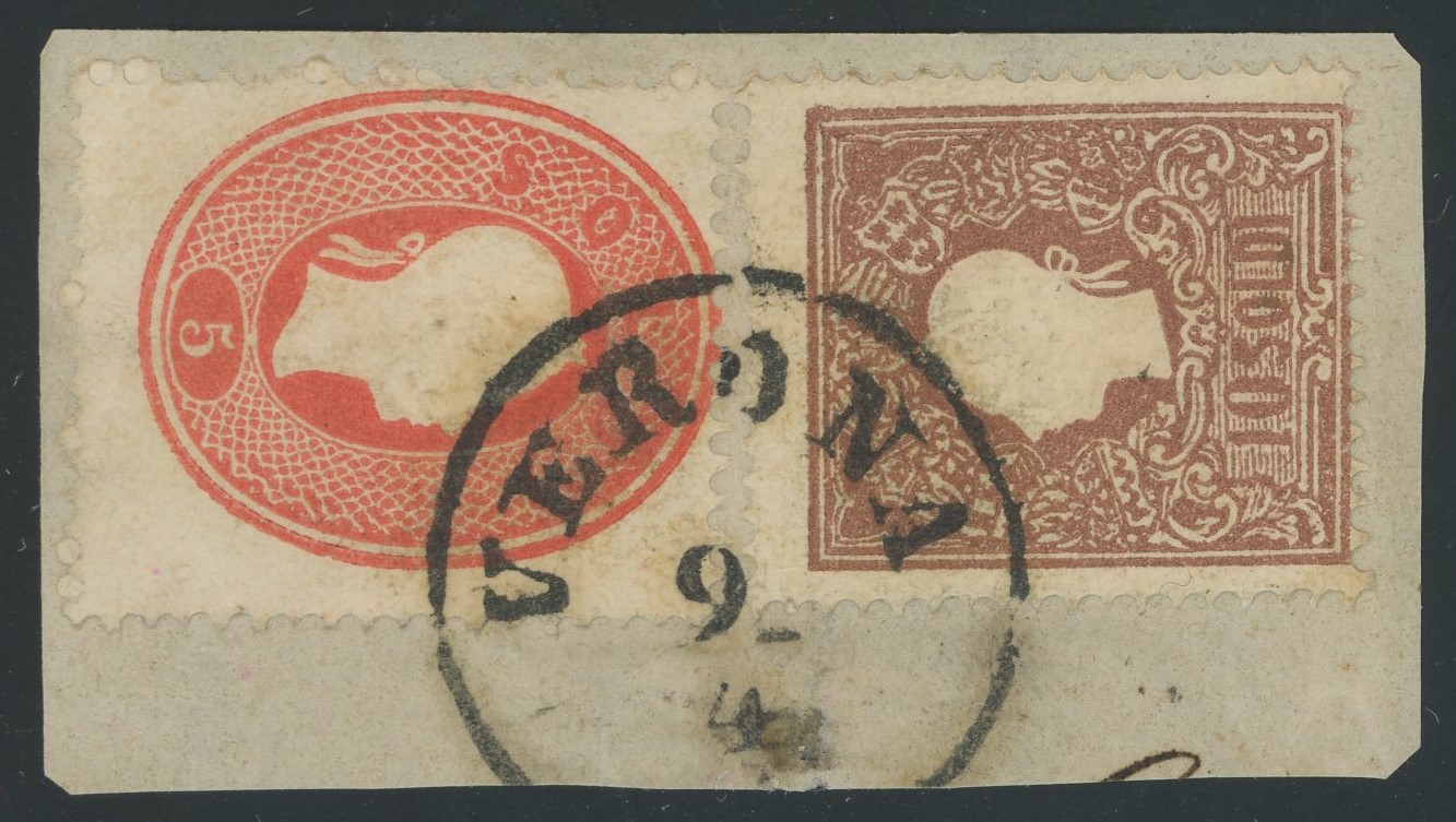 Lombardo Veneto - Affrancatura mista di due emissioni