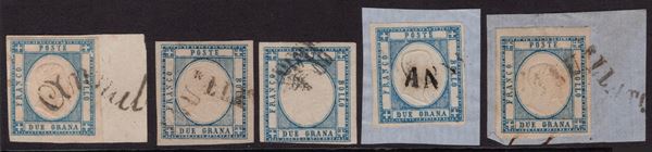 1861 - Splendida affrancatura composta da due valori della II emissione da 3 soldi secondo tipo n.29 + due esemplari della III emissione da 5 soldi n.33, tutti su di un unico frammento. Insieme non comune. (A+)