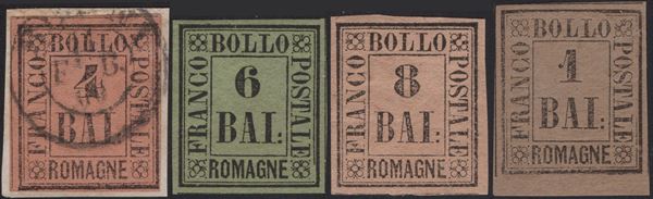 1850 - 15 cent. I tipo carta costolata n.14, due esemplari con diverse tonalità di colore e con interessanti varietà. (A+)