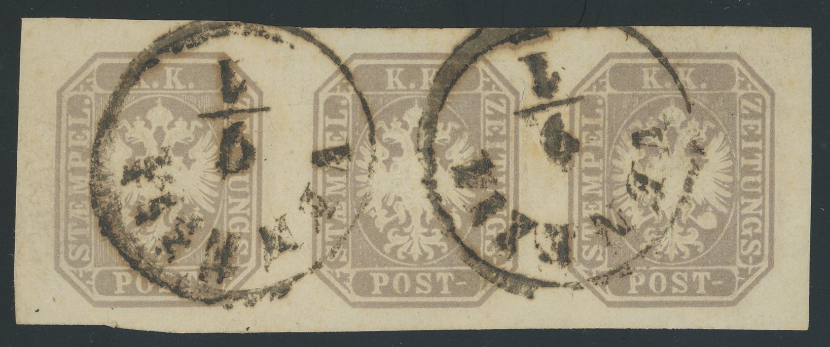 Lombardo Veneto - Francobolli per Giornali, 1,05s. in striscia di tre.