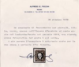 1861 - 1,05s. lilla grigio chiaro n.10a nuovo con gomma originale. Cat. 3.250. (A) (Cert. Fiecchi, Emilio Diena, Alberto Diena)