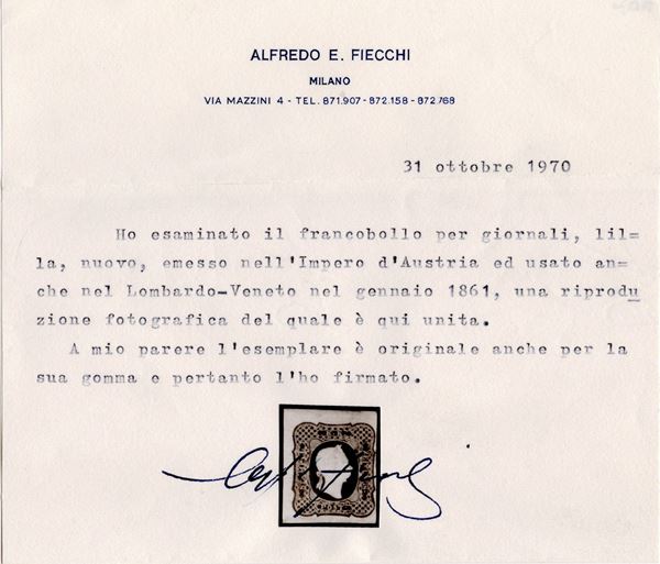 Lombardo Veneto - Francobolli per Giornali, 1.05s. lilla grigio chiaro nuovo con gomma.