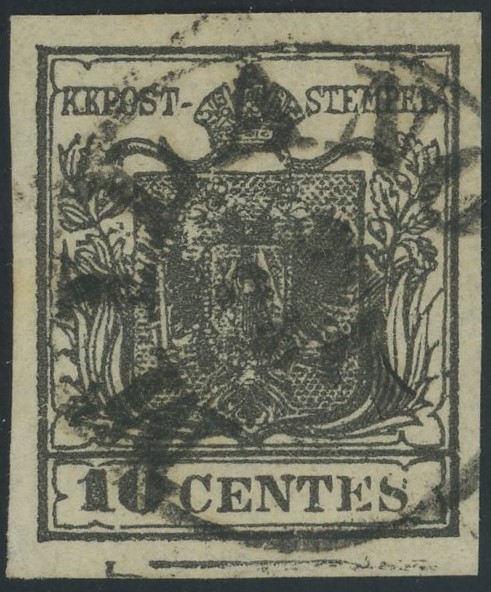Lombardo Veneto - I emissione, 10 cent. con spazio tipografico.