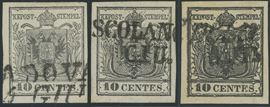Lombardo Veneto - I emissione, 10 cent. Grigio Argento, Grigio Nero e Nero Intenso
