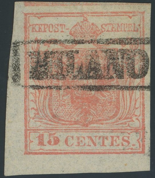 Lombardo Veneto - I emissione, 15 cent. II tipo rosa carmicino con spazio tipografico in alto.