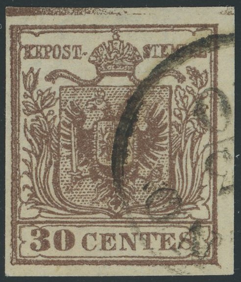 Lombardo Veneto - I emissione, 30 cent. II tipo con spazio tipografico