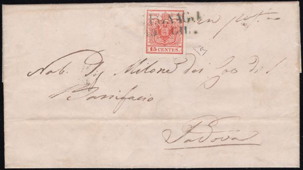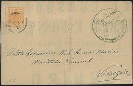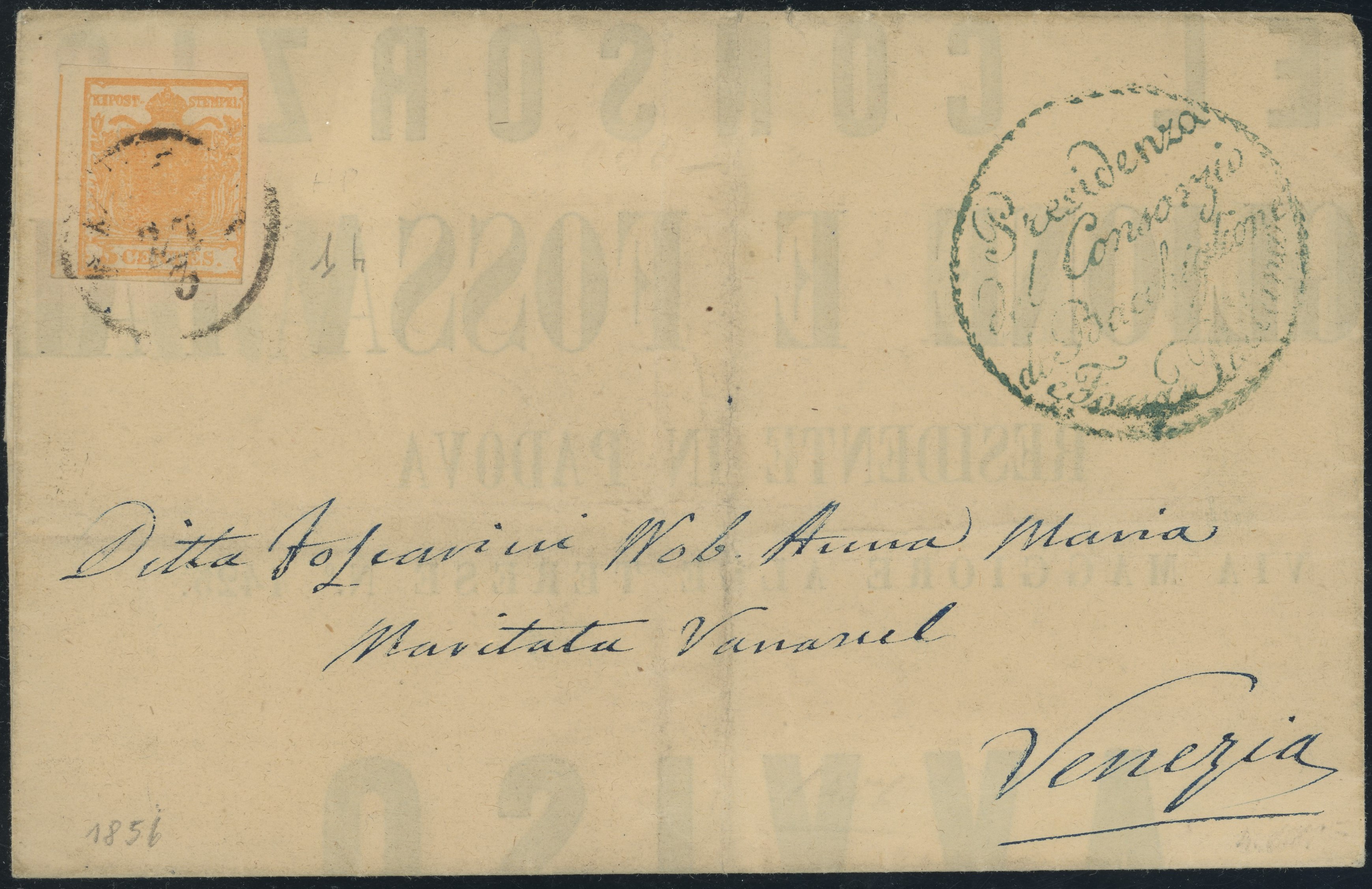 27.03.1856 - Stampa da Padova a Venezia affrancata tramite un 5 cent. di una interessante tonalità di colore. (A-)