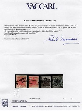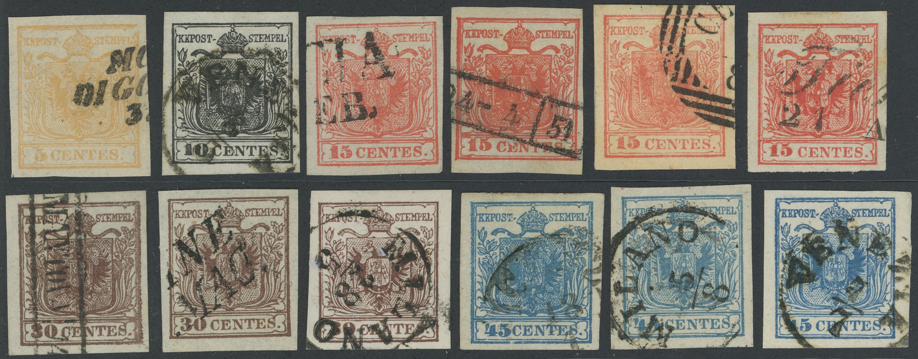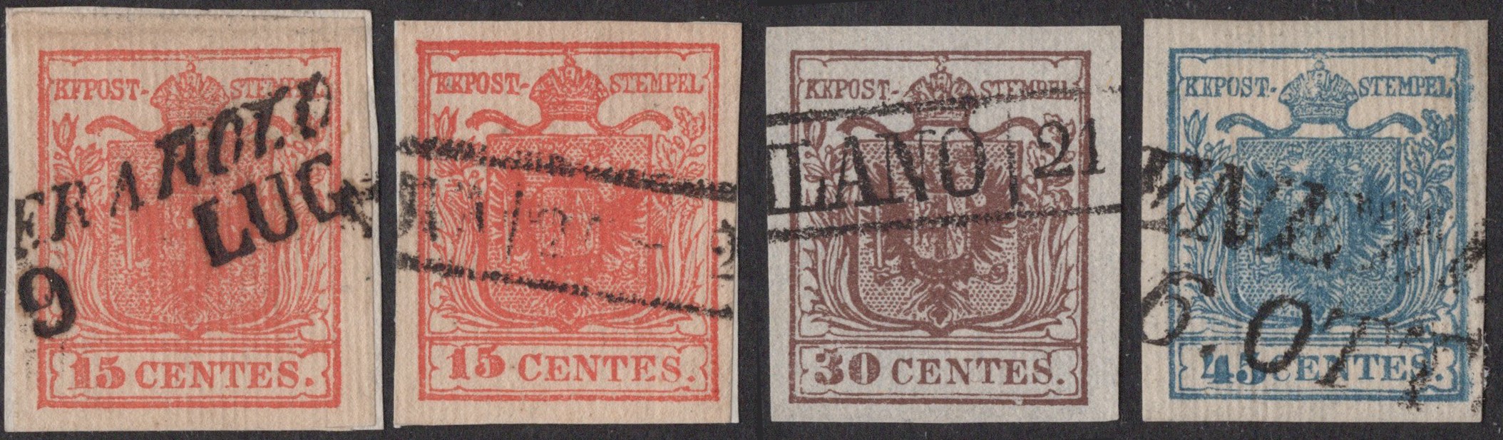 Lombardo Veneto - I emissione, la serie usata di ottima qualità Carta a mano + Carta Costolata.