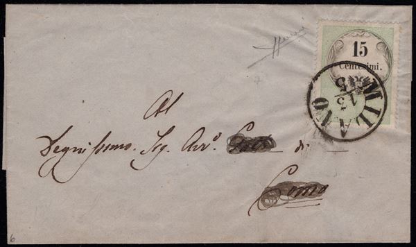 07.06.1859 - Lettera completa di testo spedita da Varese per Milano il 7 Giugno 1859 durante il periodo della definitiva liberazione della città dagli Austriaci (5 Giugno/7 Giugno, pt.R3). Grande rarità del settore. cat. 52.500. (A) (Cert. Colla)