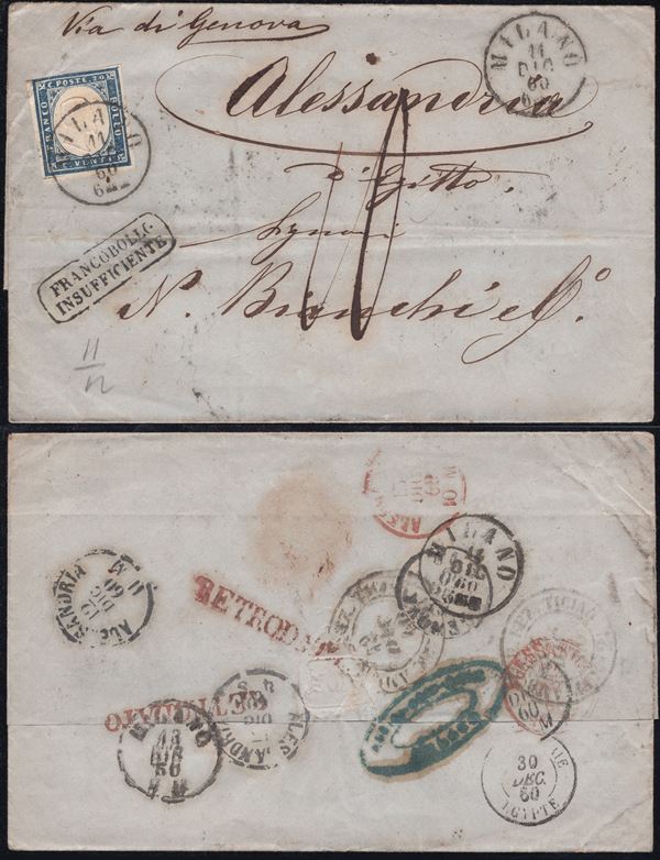 1850 - Piccolo insieme composto da 36 valori tra 15 cent (x17), 30 cent. (x9) e 45 cent. (x10) più 6 lettere affrancate con il 45 cent. di cui due lilliput.