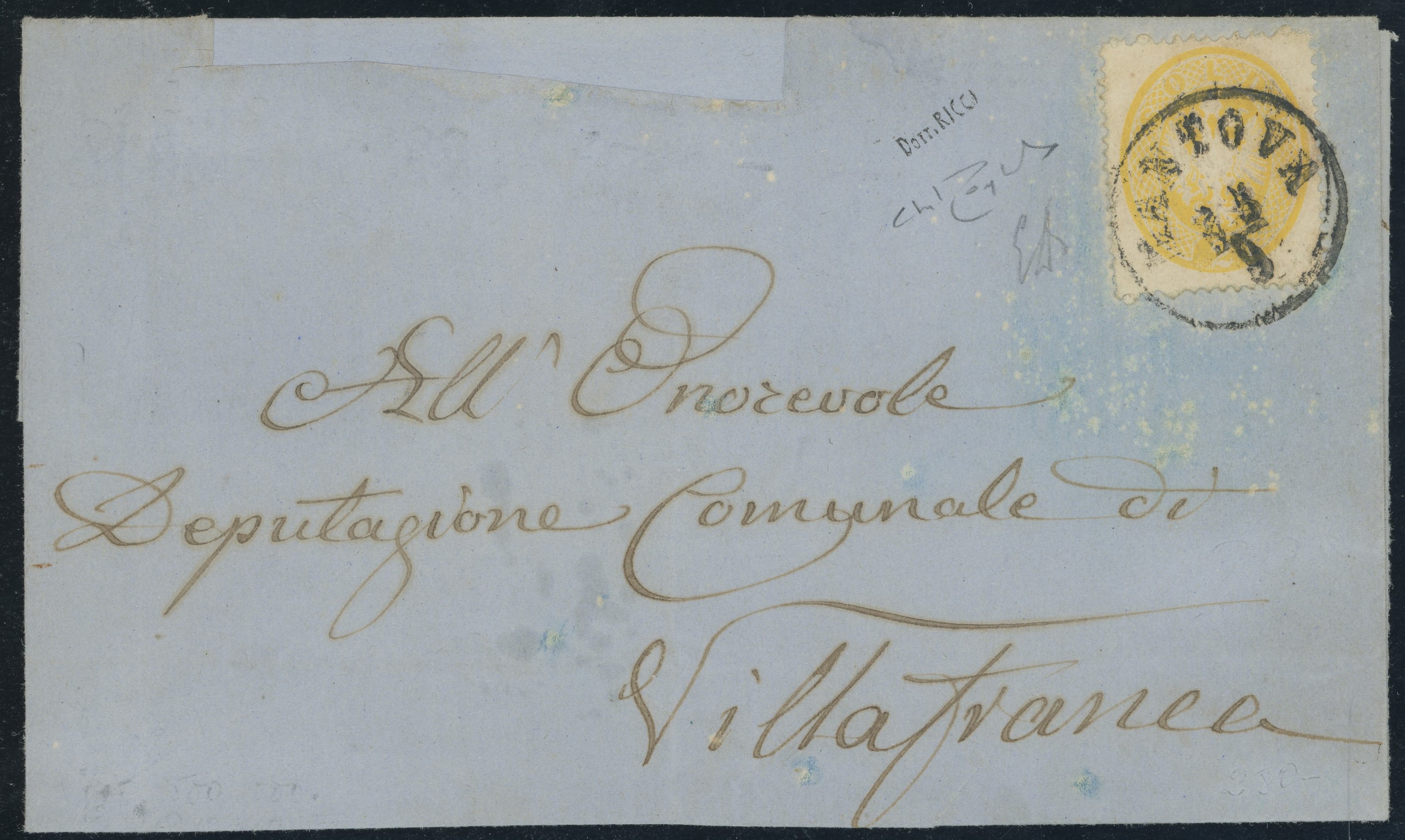 1863 - 2 soldi giallo n. 36 isolato su lettera da Mantova per Villafranca. (A) (Emilio Diena, Raybaudi)