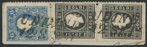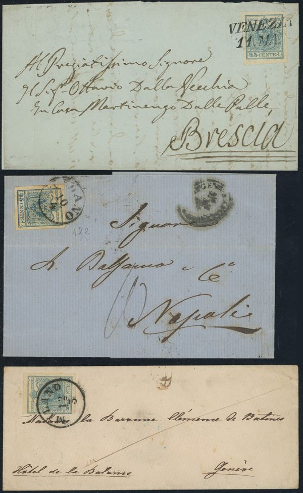 1850 - Raccomandata da Asola per Maser che era nel distretto postale, affrancata tramite un 10 cent. nero n.2 + 15 cent. rosso I tipo n.3 con la varietà ''S deformata'', insieme non comune.
