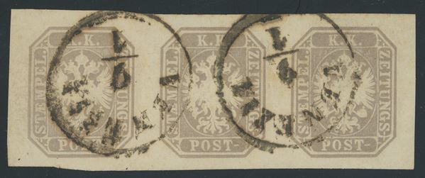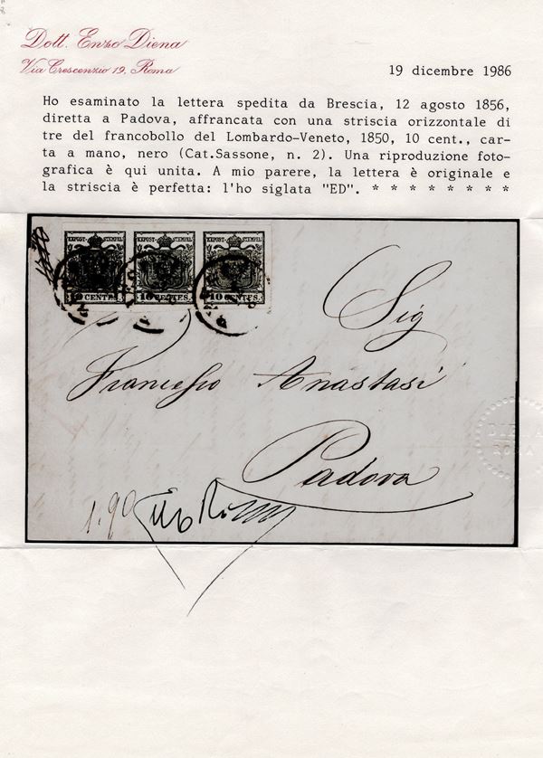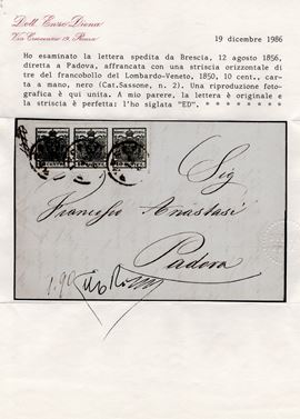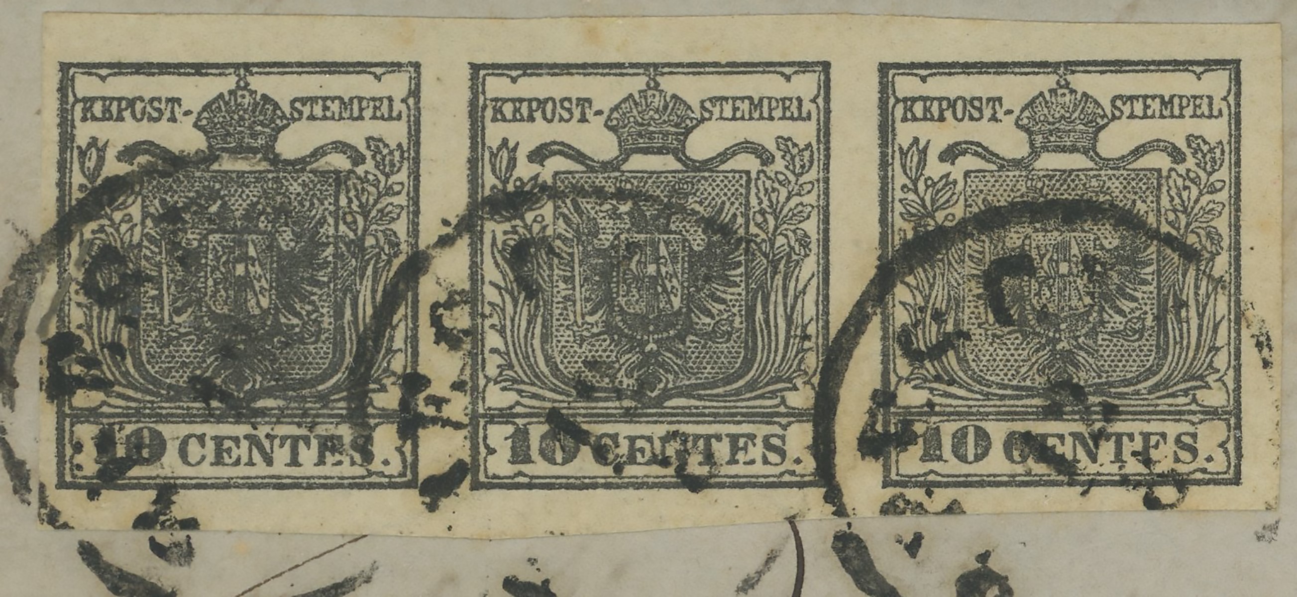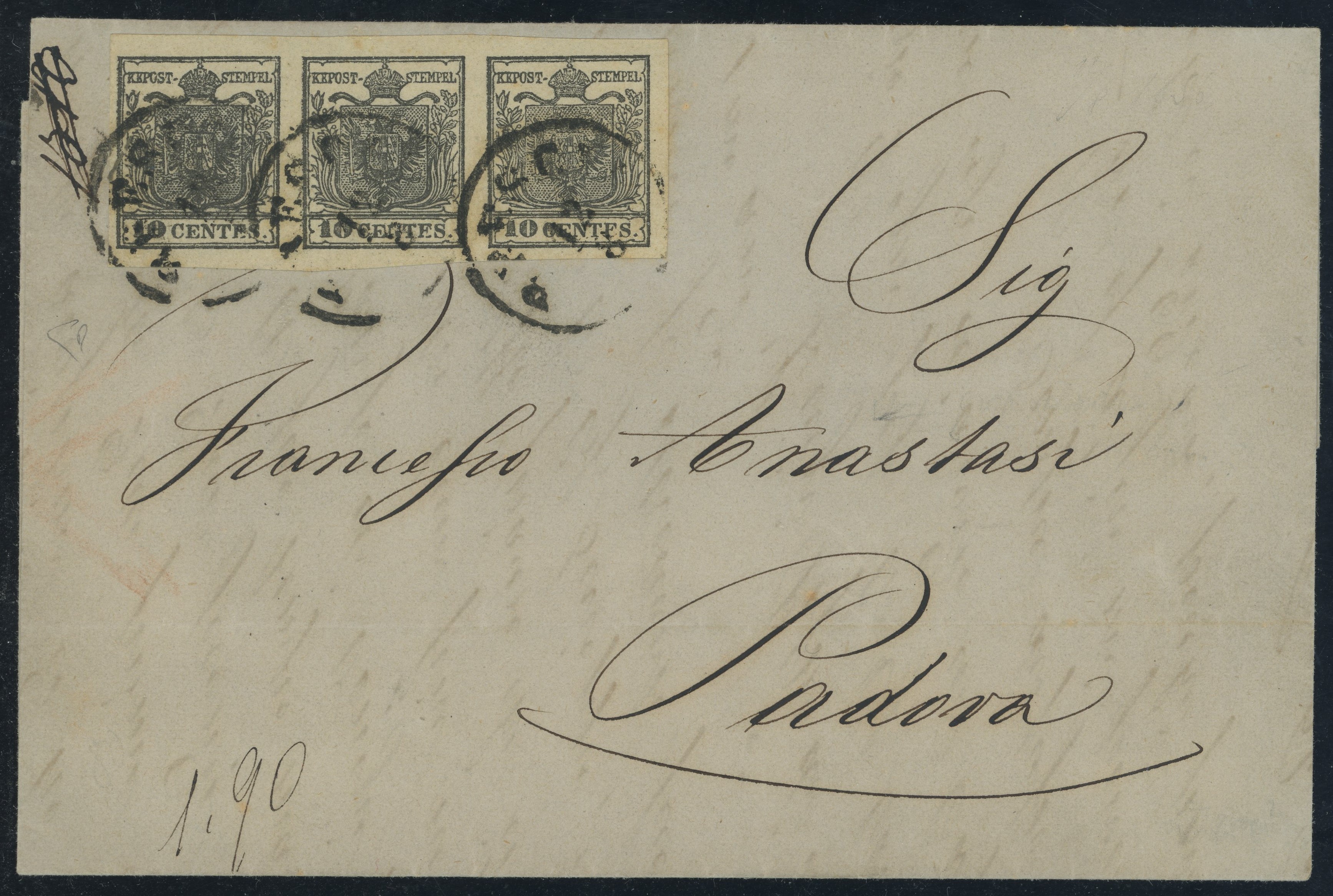 Lombardo Veneto - Storia Postale, splendida striscia di tre del 10 cent. su lettera.
