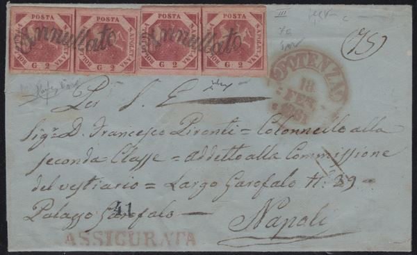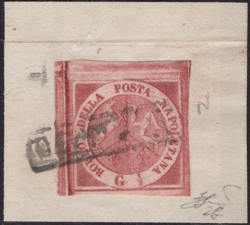 1858 - 1/2gr. carminio scuro n.2b su frammento. Margini grandiosi. (LUX) (Ferrario)