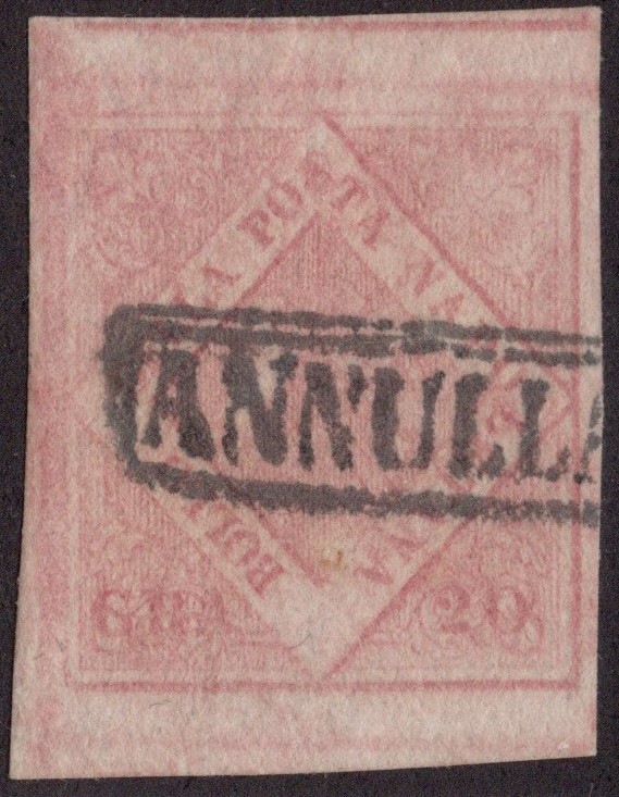 1858 - 20gr. II tav. rosa carminio chiaro n.13a, ottimamente marginato. (A+)