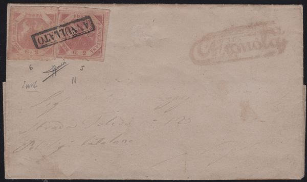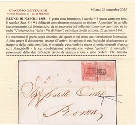 Napoli - lettera viaggiata per via di mare affrancata per 10 grana tramite un 5gr. I tav. + 5gr. II tav. combinazione molto rara. (A+) (Cert. Bottacchi, Enzo Diena)