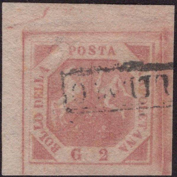 1858 - 10gr. I tav. rosa brunastro n.10 + 5gr. I tav rosa brunastro n.8 + 2gr. II tav. rosa lillaceo n.6a + 1gr. I tav. rosa chiaro n.3 su unico frammento. Bell'insieme non comune. (A-) (Chiavarello)