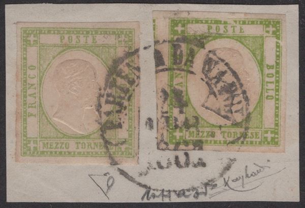 1859 - 5 cent. verde giallo n.13 nuovo con gomma originale e bordo di foglio a sinistra. Splendido. (LUX) (Enzo Diena)