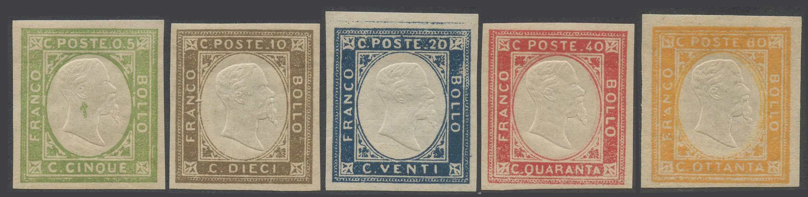 1861 - La serie non emesse n.1/5 nuova con gomma integra. Cat. 800. (A+)