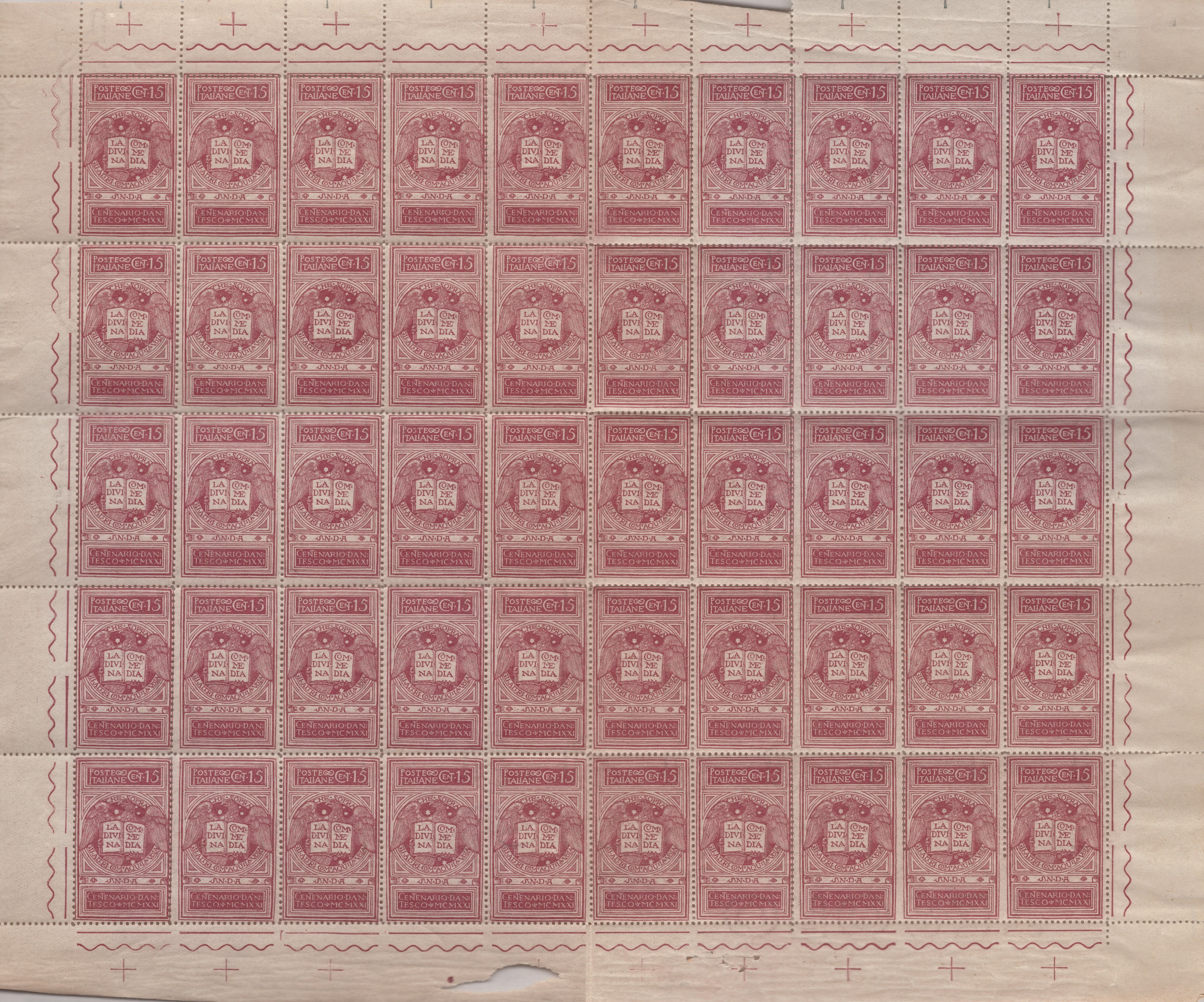Regno - Dante 1921 15 cent. in foglio di 50 + 11 serie.