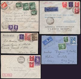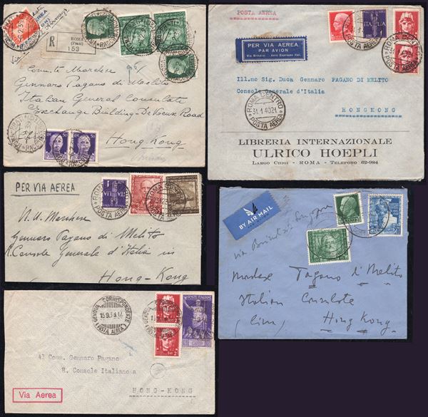 1938 - Sei interessanti buste spedite da diverse parti dell'Italia per Hong Kong, alcune interessanti affrancature. Insieme non comune e ben conservato.