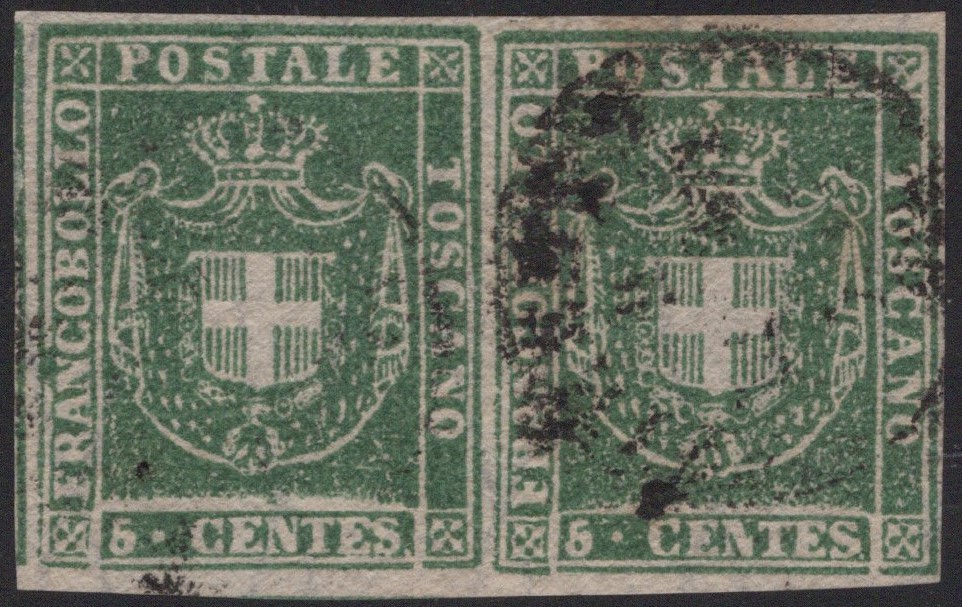 Toscana - Gov. Provvisorio, 5 cent. verde in coppia, splendida qualità.