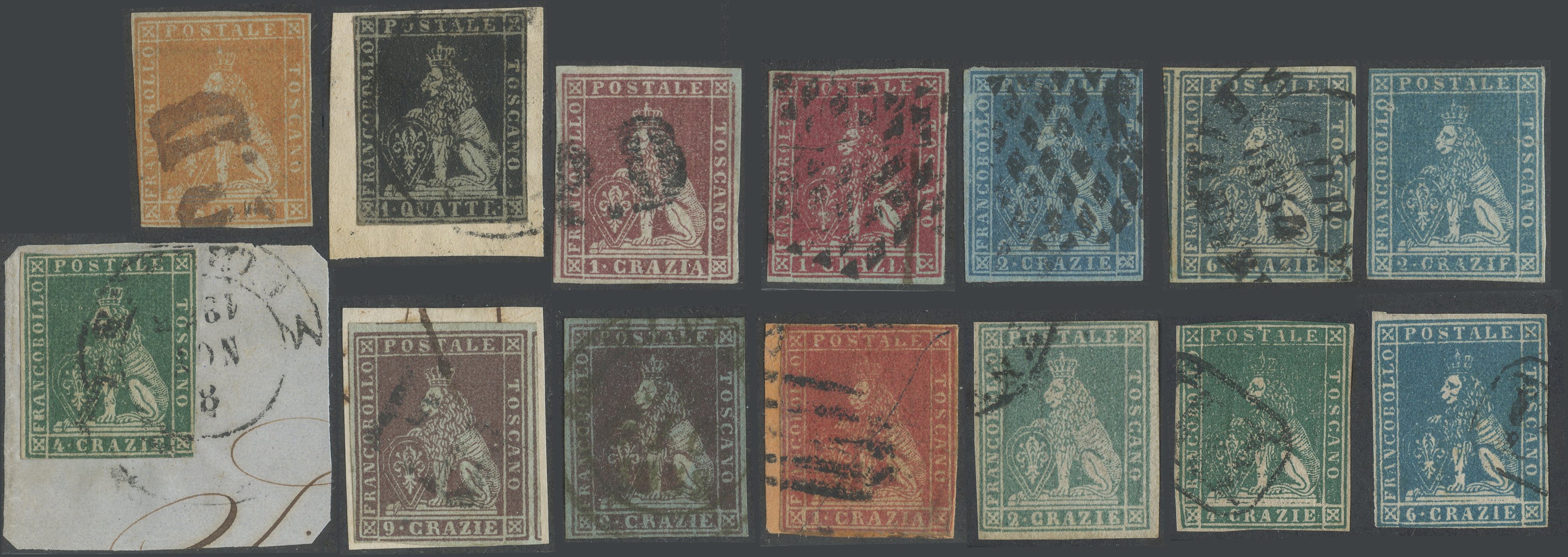1851 - Interessante insieme composto da 14 valori di qualità mista.