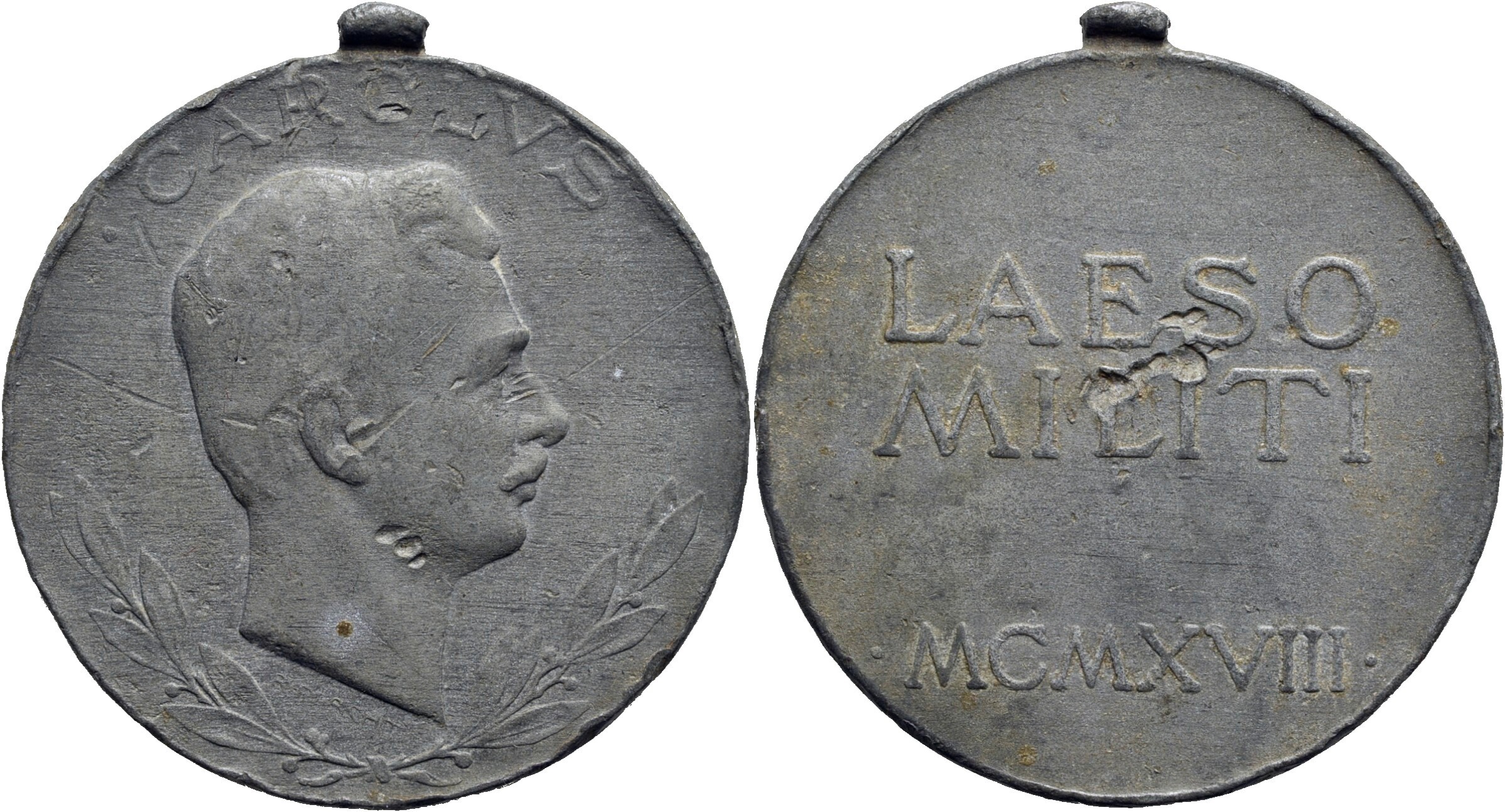Testa dell'Imperatore a d. - R/ Laeso Militi MCMXVIII Opus: Placht ร