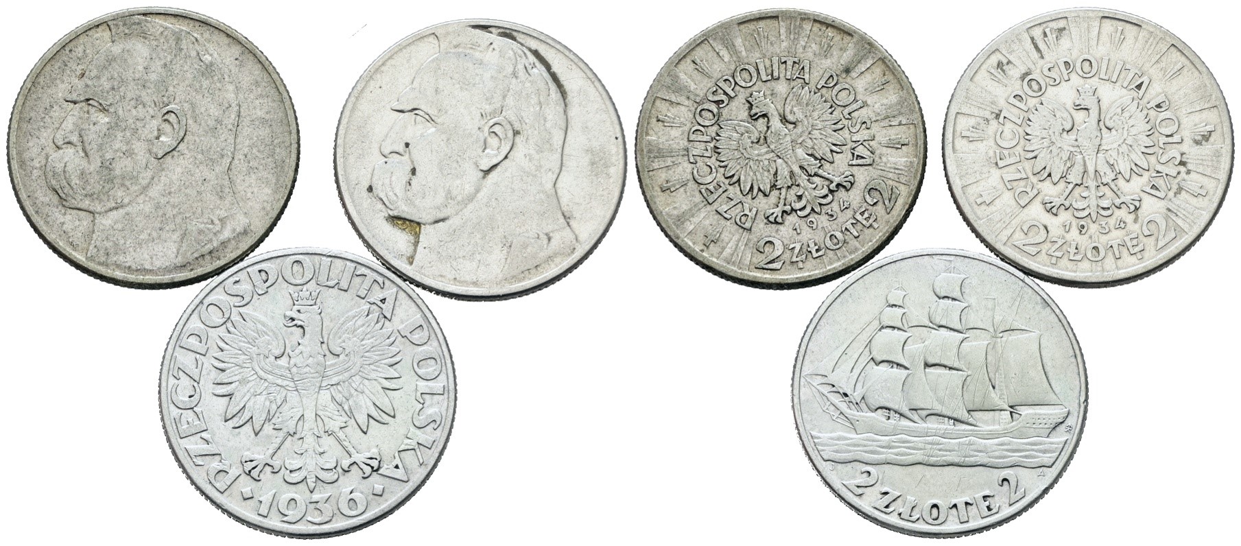 POLONIA. Lotto di 3 monete da 2 zlotych, 1934, 1934, 1936. Ag; Conservazioni varie.