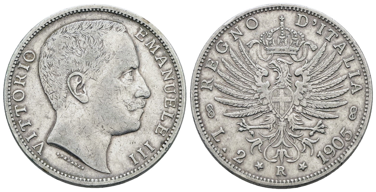 REGNO D'ITALIA. Vittorio Emanuele III (1900-1943). 2 lire 1905 "Aquila sabauda". Ag; 10gr; Gig. 93; BB