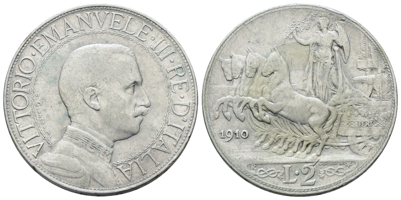 REGNO D'ITALIA. Vittorio Emanuele III (1900-1943). 2 lire 1910 "Quadriga veloce". Ag; 10gr; Gig. 97; NC; BB