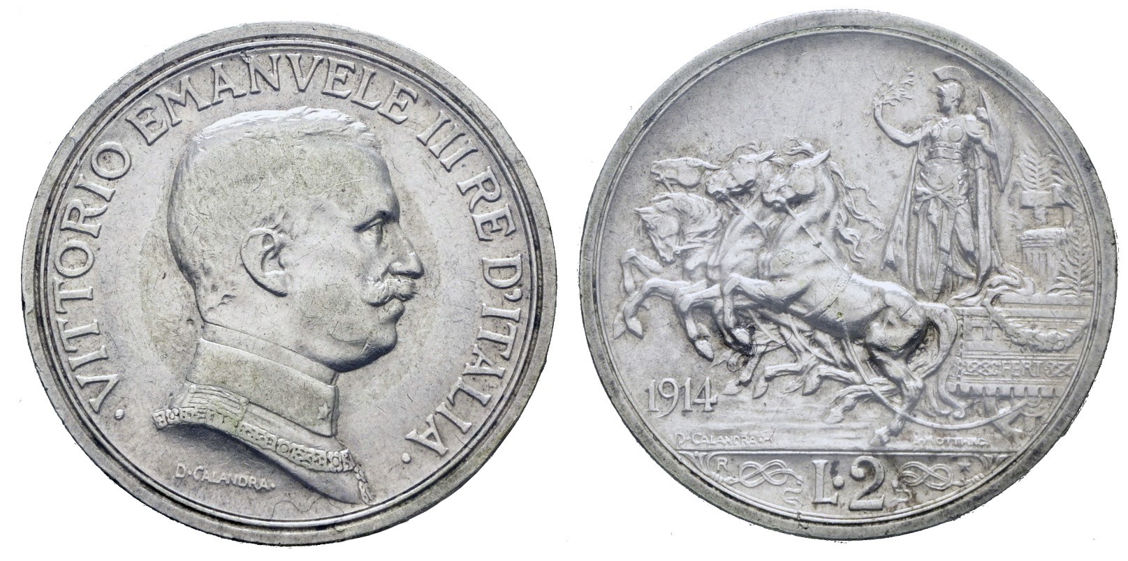 REGNO D'ITALIA. Vittorio Emanuele III (1900-1943). 2 lire 1914 "Quadriga briosa". Ag; 10gr; Gig. 101; BB/SPL