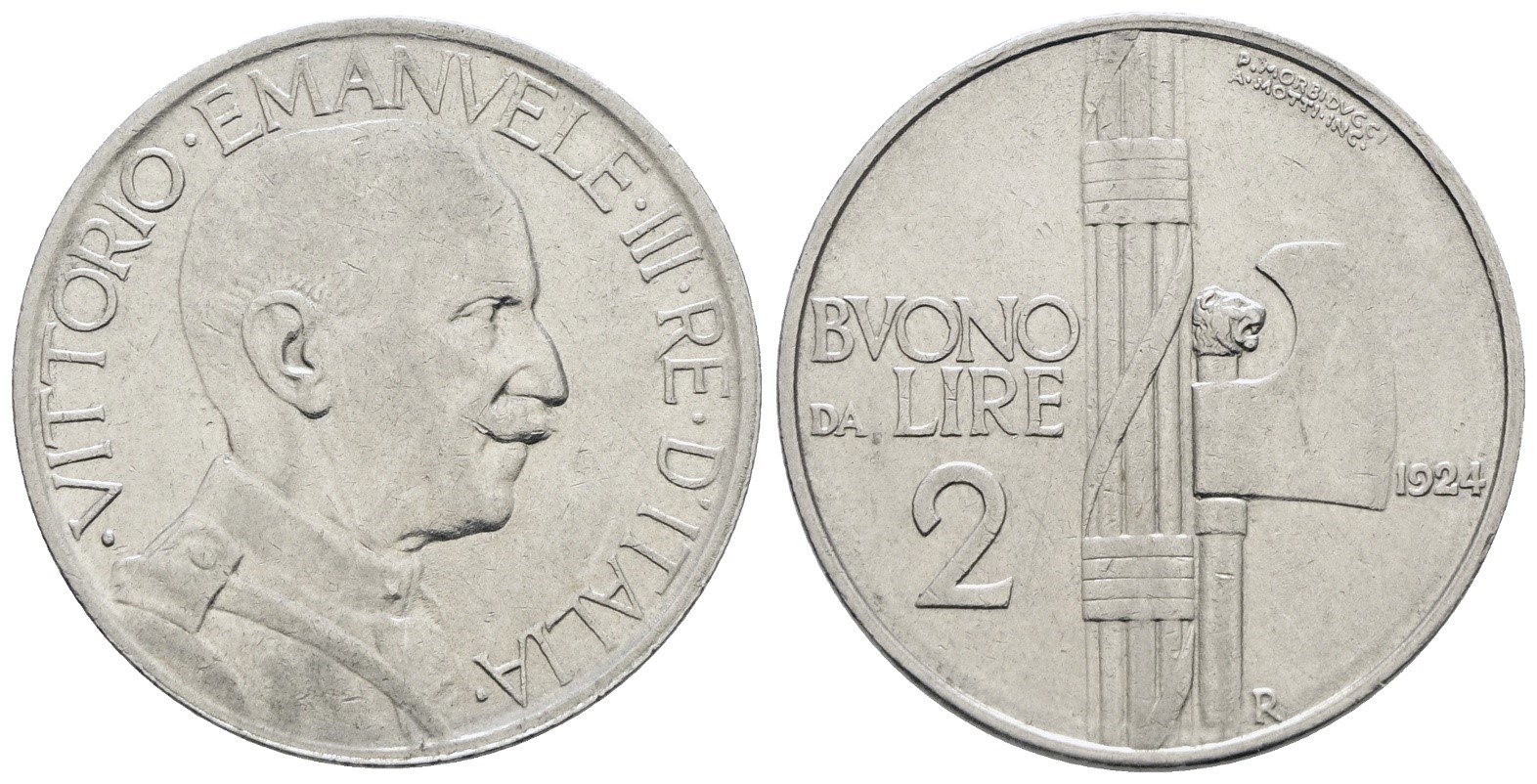 REGNO D'ITALIA. Vittorio Emanuele III (1900-1943). 2 lire 1924 "Fascio". Ni; 10gr; Gig. 106; SPL