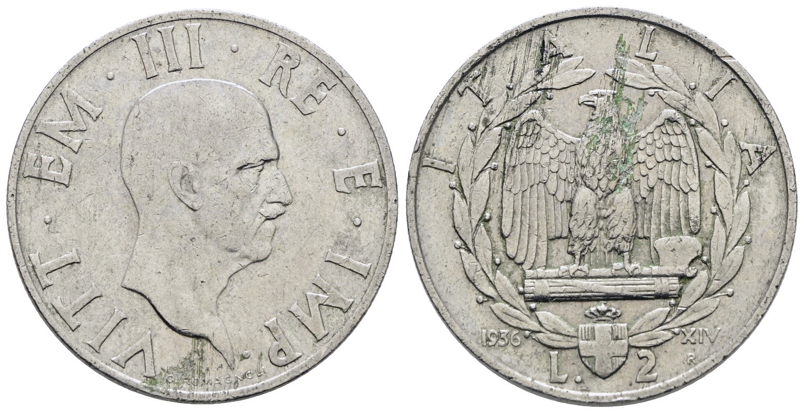 REGNO D'ITALIA. Vittorio Emanuele III (1900-1943). 2 lire 1936 "Impero". Ni; Gig. 118; Raro; BB, striature.