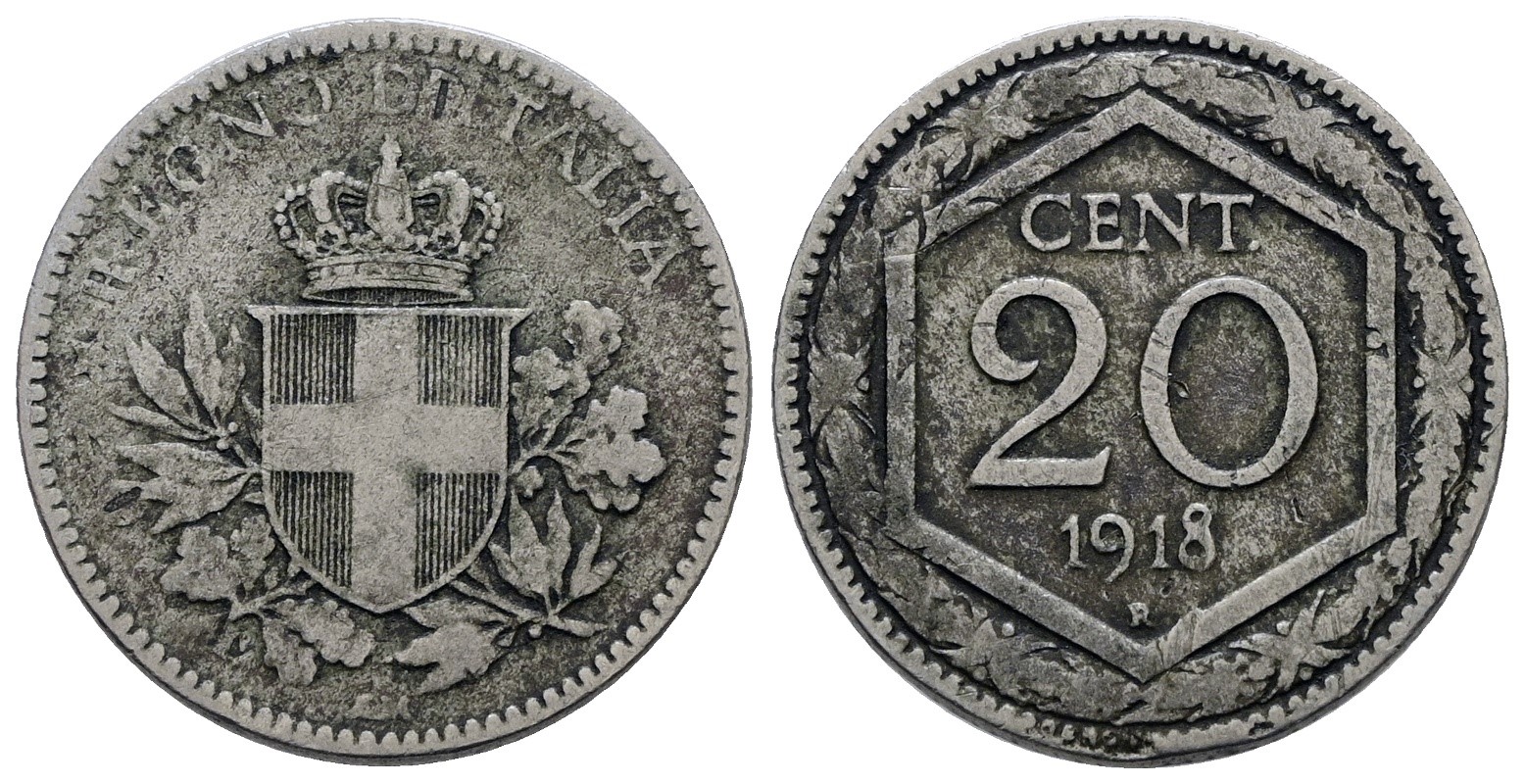 REGNO D'ITALIA. Vittorio Emanuele III (1900-1943). 20 centesimi 1918 "Esagono". Ni; 4gr; Gig. 214; BB
