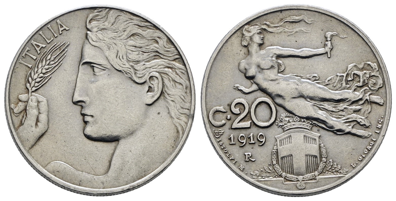 REGNO D'ITALIA. Vittorio Emanuele III (1900-1943). 20 centesimi 1919"Libertà librata". Ni; 4gr; Gig. 200; NC; Q.SPL