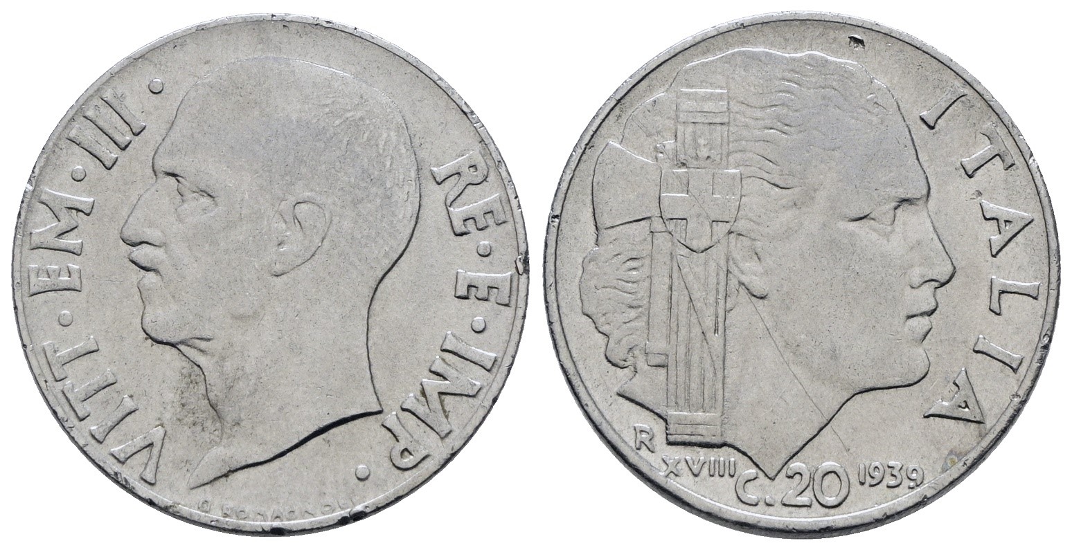 REGNO D'ITALIA. Vittorio Emanuele III (1900-1943). 20 centesimi 1939 XVIII "Impero". Ac; Gig. 219; SPL