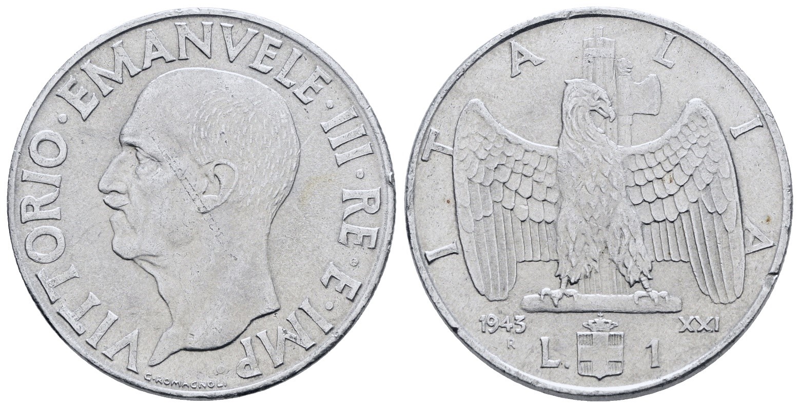 REGNO D'ITALIA. Vittorio Emanuele III (1900-1943). Lira 1943 "Impero". Ac; 8gr; Gig. 159; Raro; SPL