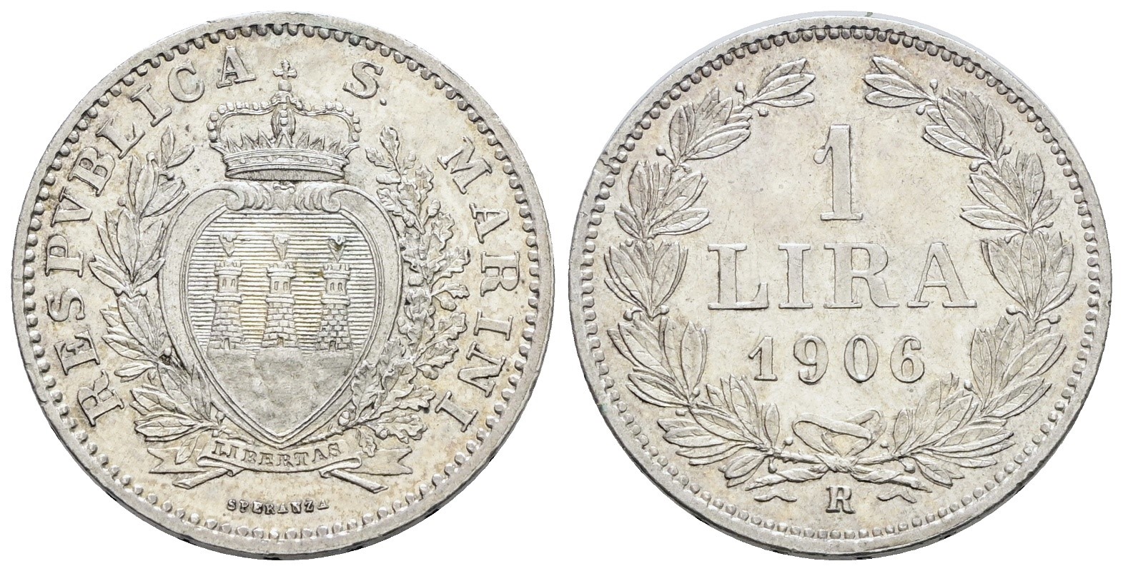 SAN MARINO. Vecchia monetazione (1864-1938) 1 lira 1906. Ag; 5gr; Gig.28; Q.FDC