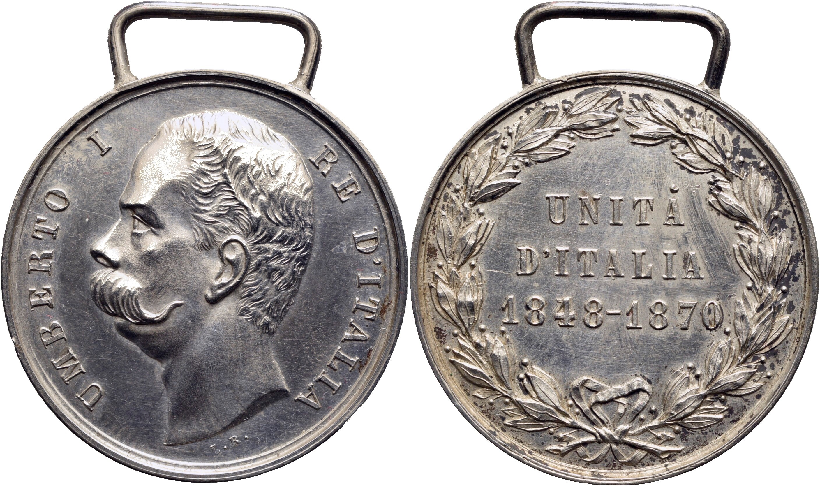 SAVOIA - Umberto I Medaglia 1883 - Unità d'Italia 1848-1870 Ø: 32 mm. - (AG g. 11,7) RR Bramb. I pag. 347. Hairlines. qFDC
