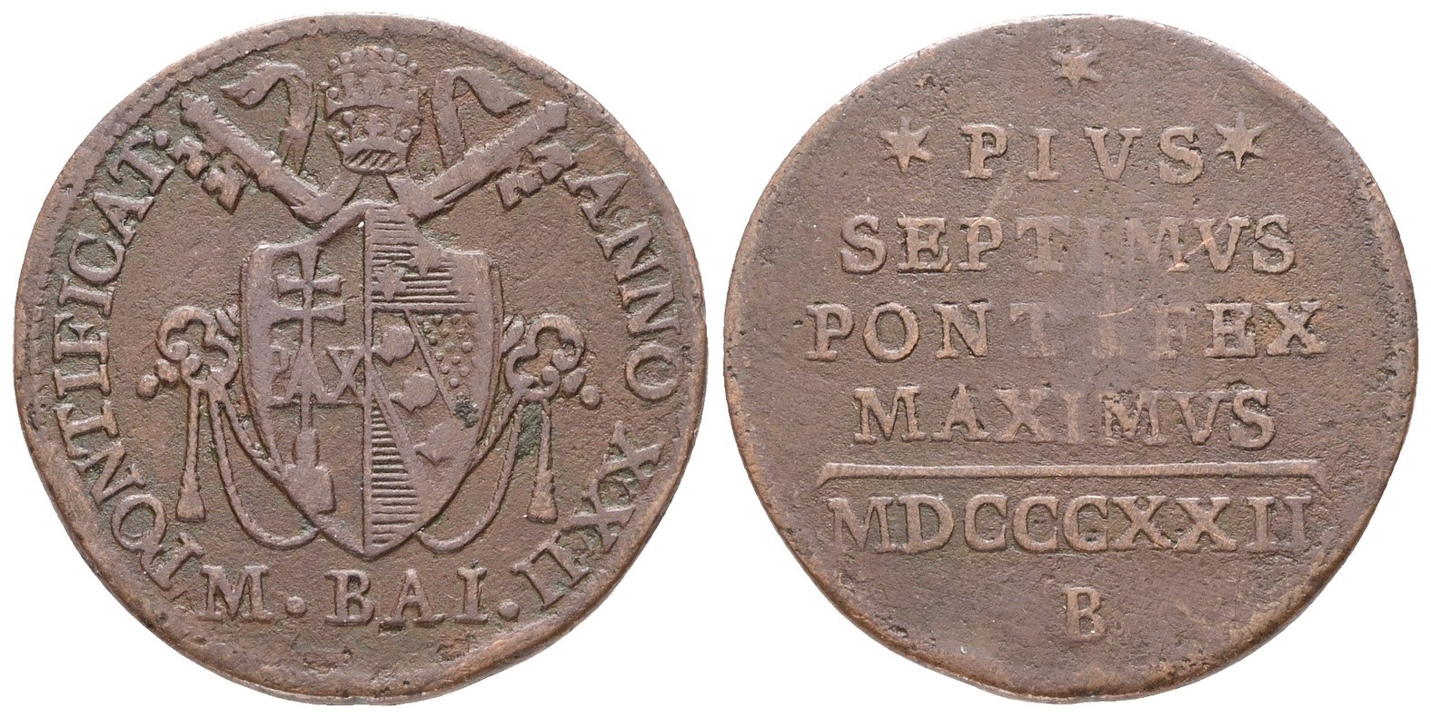 STATO PONTIFICIO. BOLOGNA. Pio VII (1800-1823). 1/2 Baiocco 1822. Cu; Gig.68; RR; BB