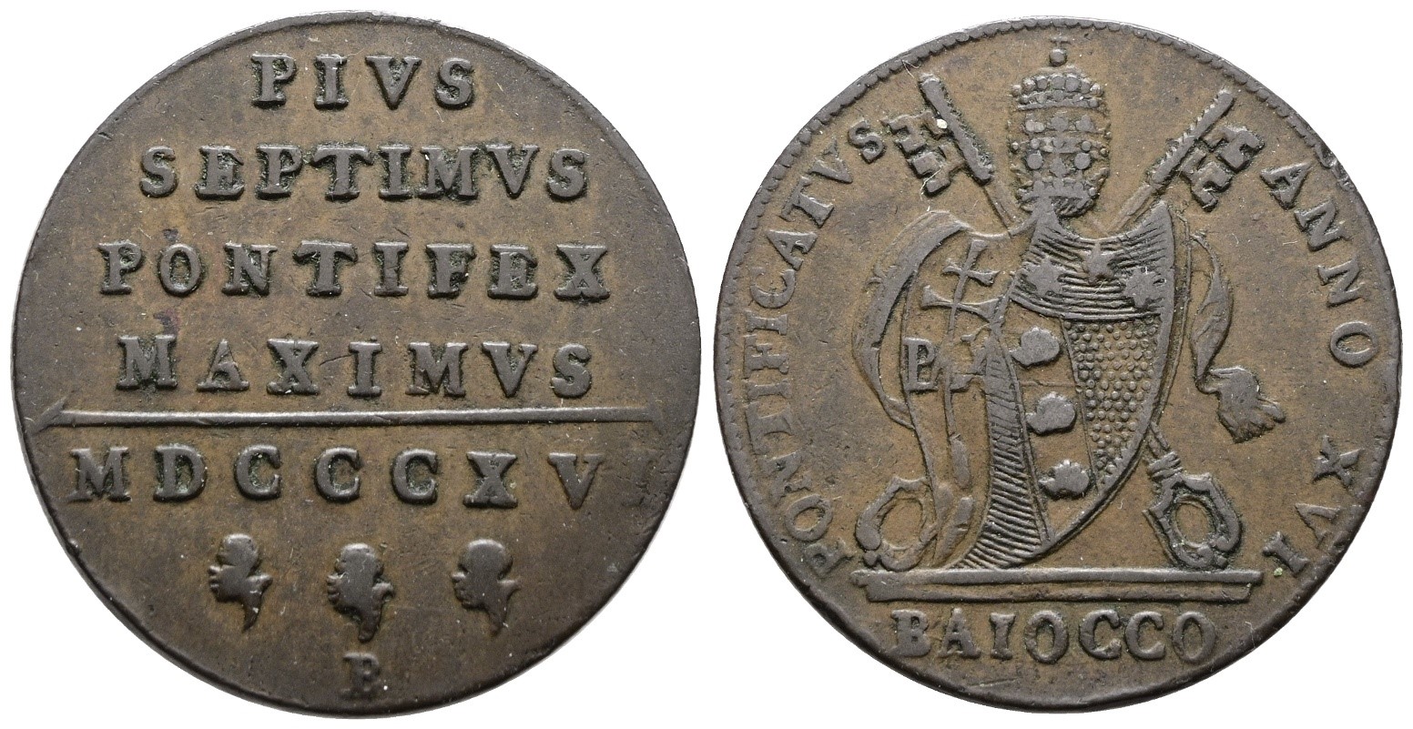 STATO PONTIFICIO. BOLOGNA. Pio VII (1800-1823). Baiocco 1816 Anno XVI. Cu; 12gr; Gig.58; BB+