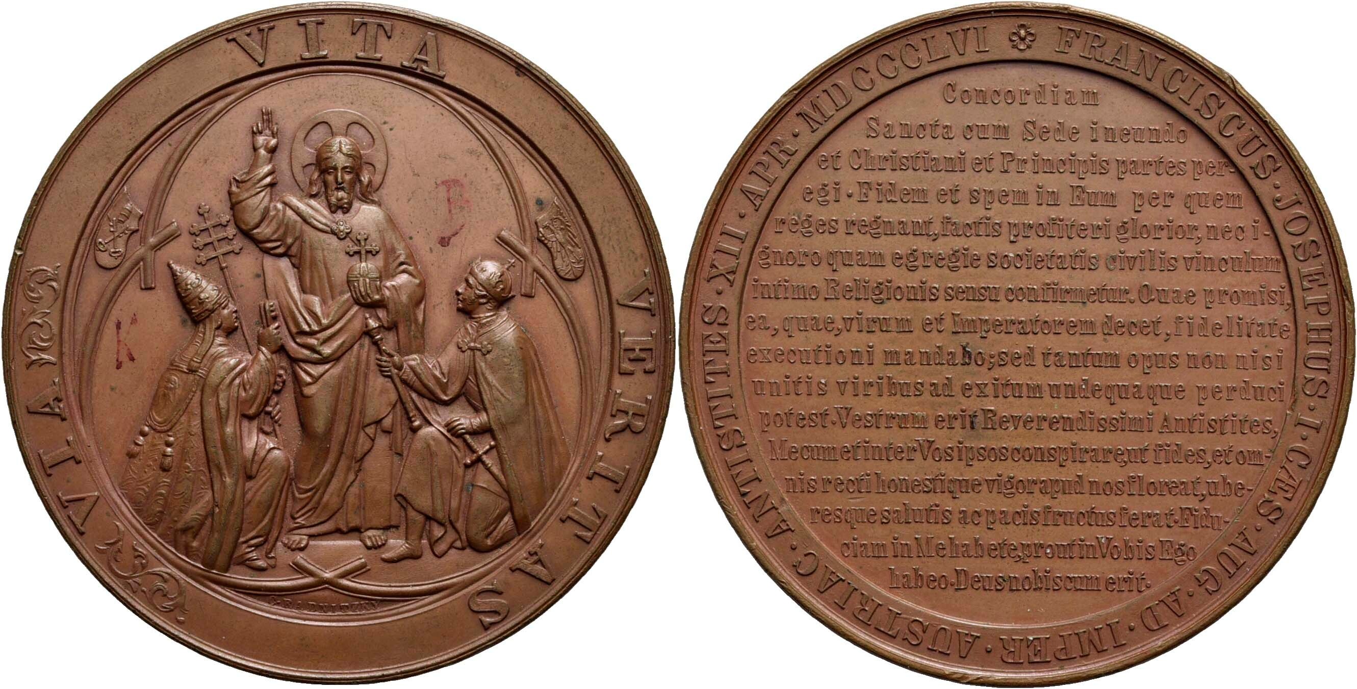 STATO PONTIFICIO. Pio IX (1846-1878). Medaglia - 1856 - Messaggio di Francesco Giuseppe Ø: 61 mm (AE g. 101) R. qFDC