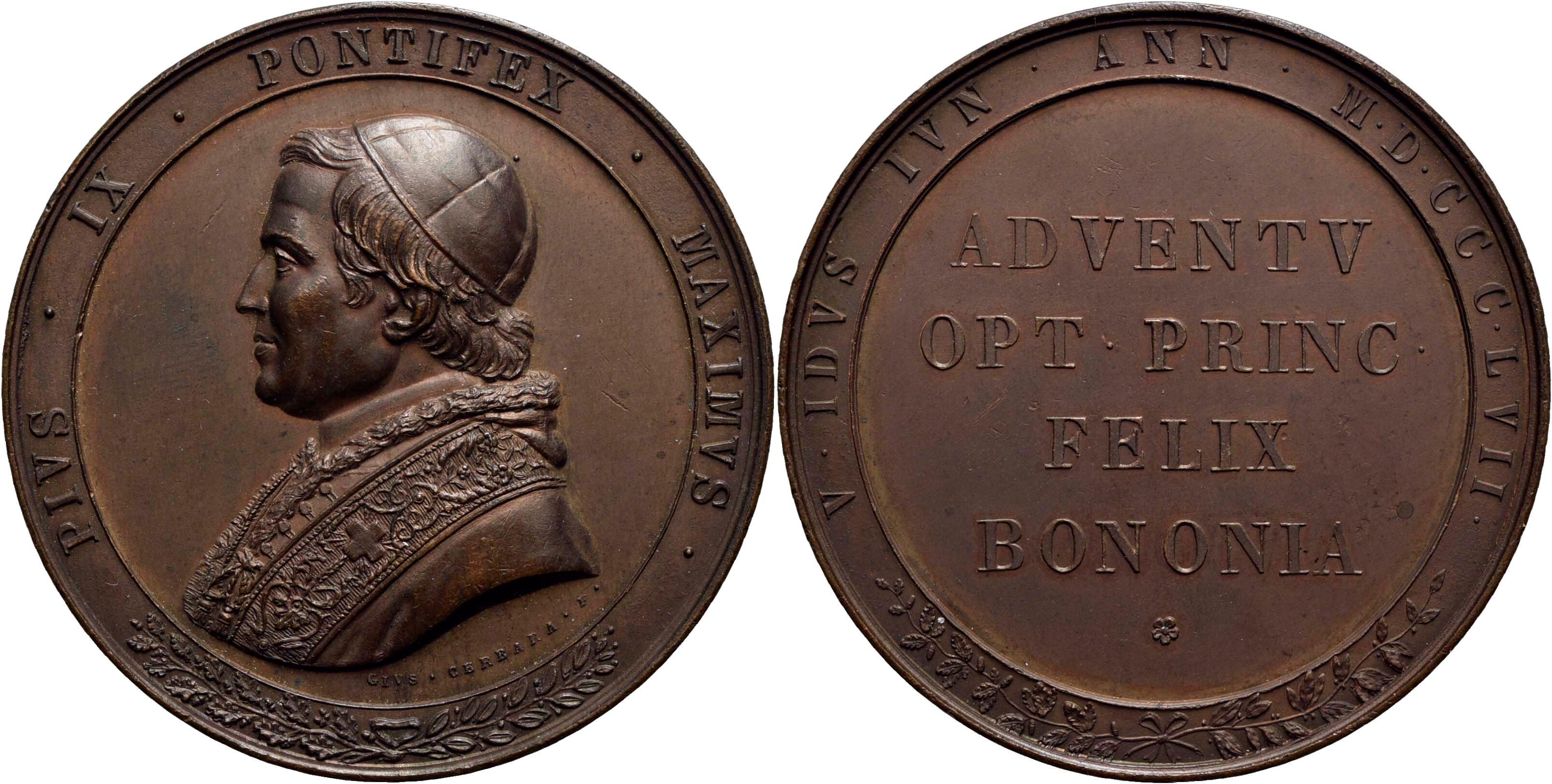 STATO PONTIFICIO. Pio IX (1846-1878). Medaglia - 1857 - Visita a Bologna ร: 50 mm. - (AE g. 56) R. FDC