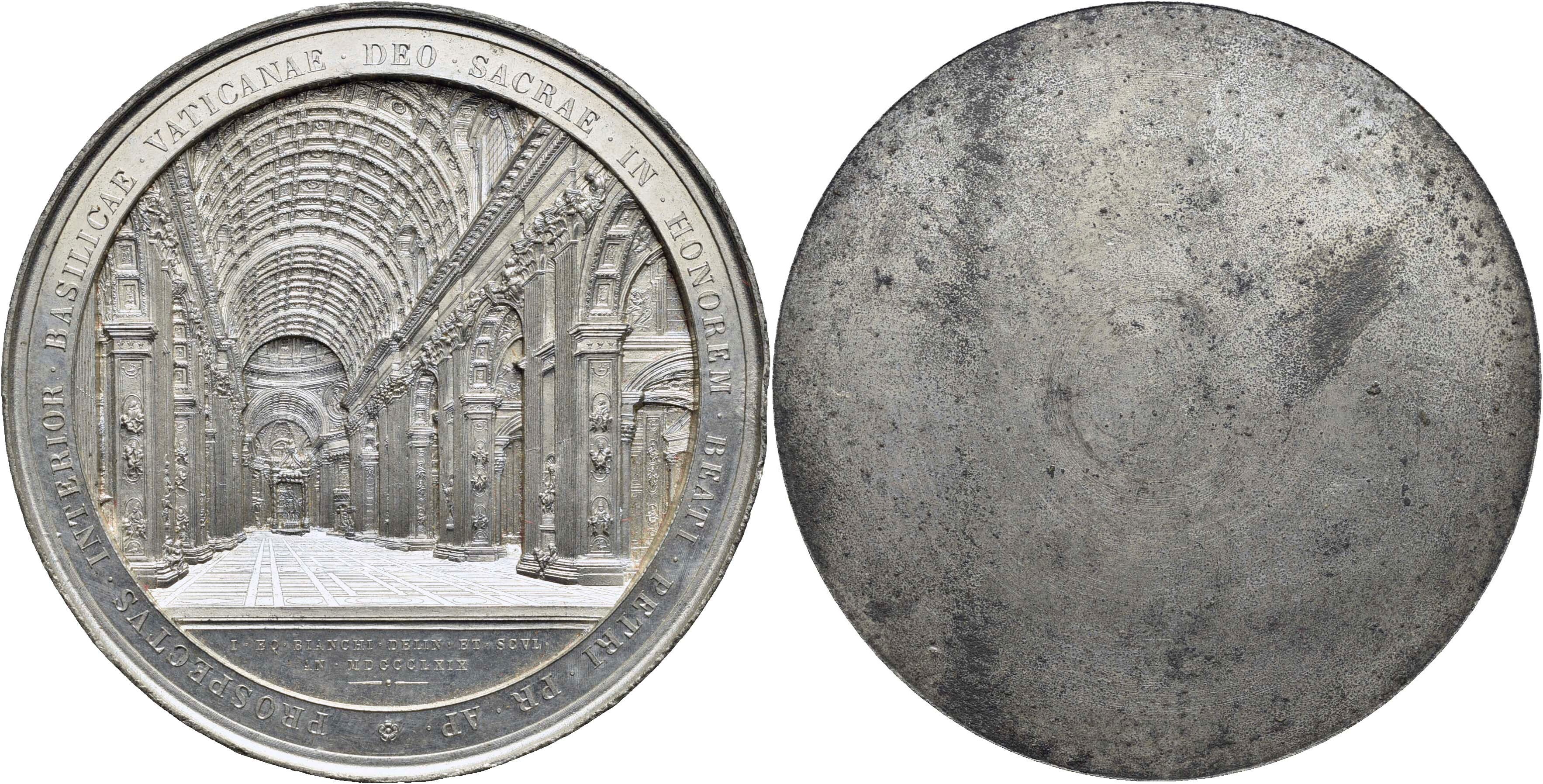 STATO PONTIFICIO. Pio IX (1846-1878). Medaglia 1854 per la ricostruzione della basilica. 80 MM. - (MB G. 311) QFDC