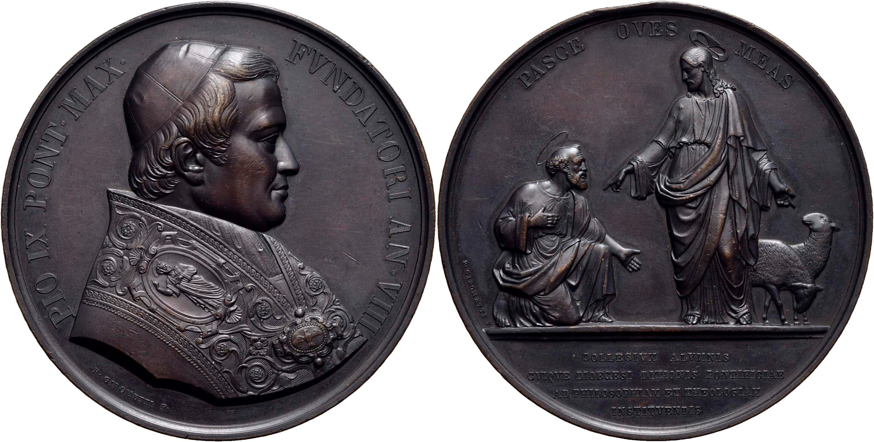 STATO PONTIFICIO. Pio IX (1846-1878). Medaglia A. VIII - Istituzione del Seminario Pio ร: 68 mm. (AE g. 165) RR . SPL-FDC