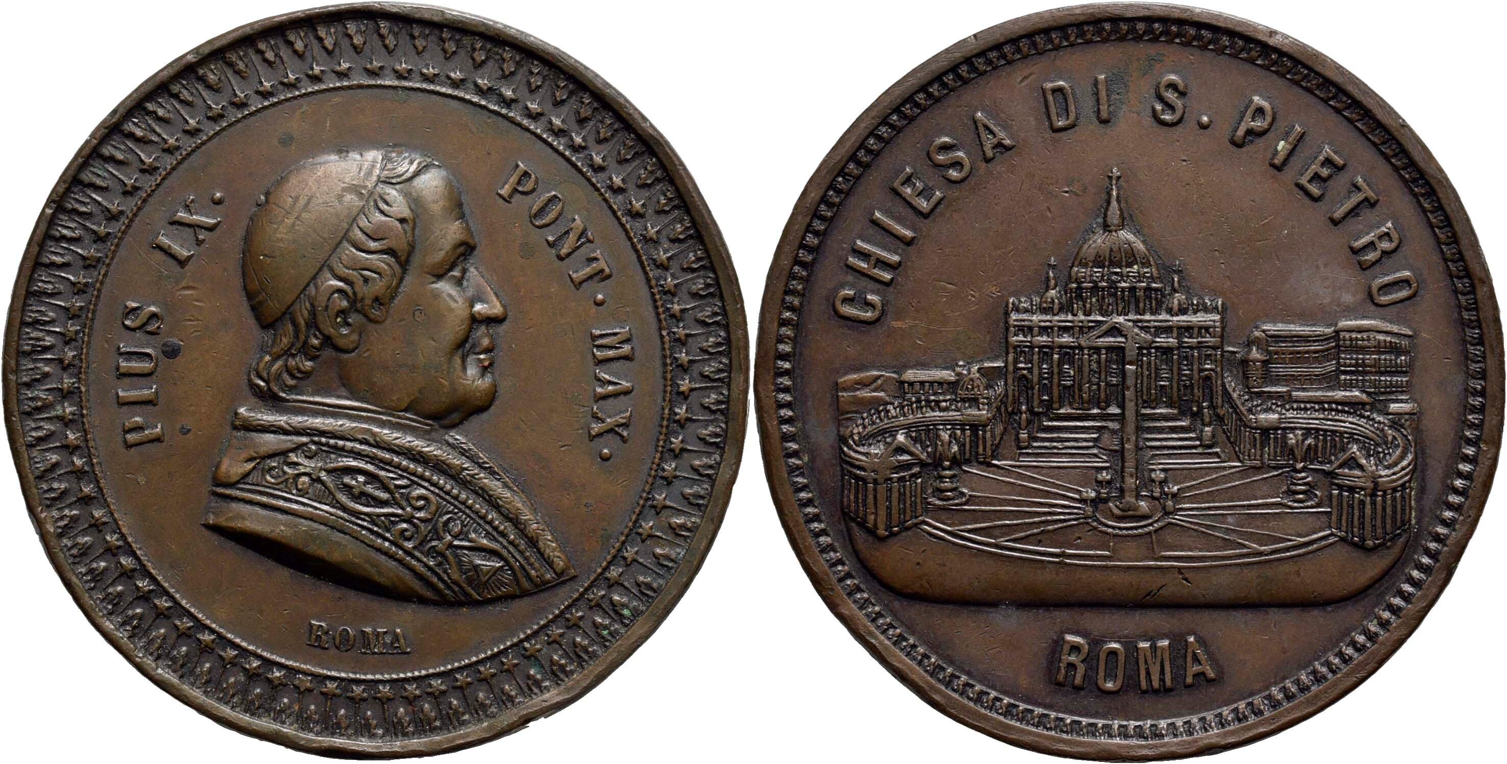 STATO PONTIFICIO. Pio IX (1846-1878). Medaglia ร: 47 mm. - (AE g. 50) Bart. SD-72 Ex Felsinea 2016. qSPL